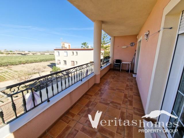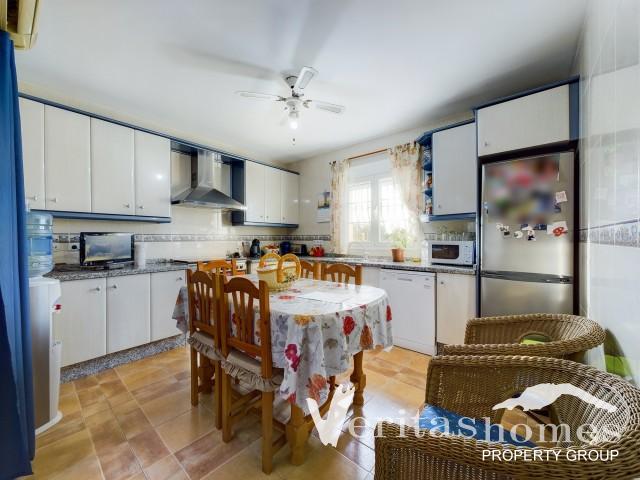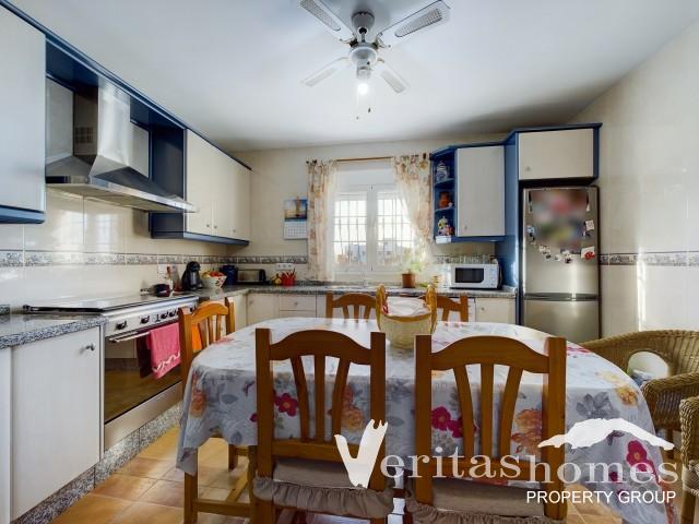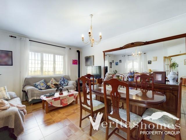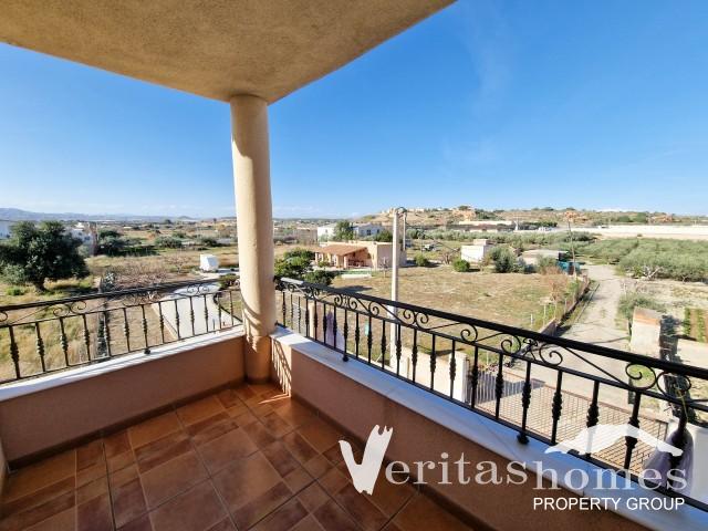 This large property is on the edge of Turre town but within a couple of minutes’ walk of supermarkets, shops, banks and restaurants. The views are mainly over the countryside with no buildings on one side. The property consists of 3 levels: large basement with a window, ground floor and first floor with 5 bedrooms and 2 bathrooms. There are two terraces, both covered, one is at the entrance level and the other on the first floor.