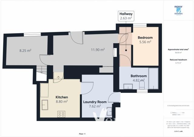 Stairs take you down to the lower floor and directly into a room that has a small window and could be an office space. From here you walk into the living room, equipped with a fireplace and a door to the side street. Adjacent to the living room is a fully fitted kitchen with wooden cabinets, a gas hob, and an electric oven. The fridge freezer is conveniently located in the next room. The utility room, accessible from the kitchen, includes a washing machine, sink, and additional storage space. From the utility room, you can access the partially covered patio, with an outside toilet and sink. A hallway off the sitting/dining room leads to the third bedroom and the main bathroom, complete with a bath and a window for natural light and ventilation.