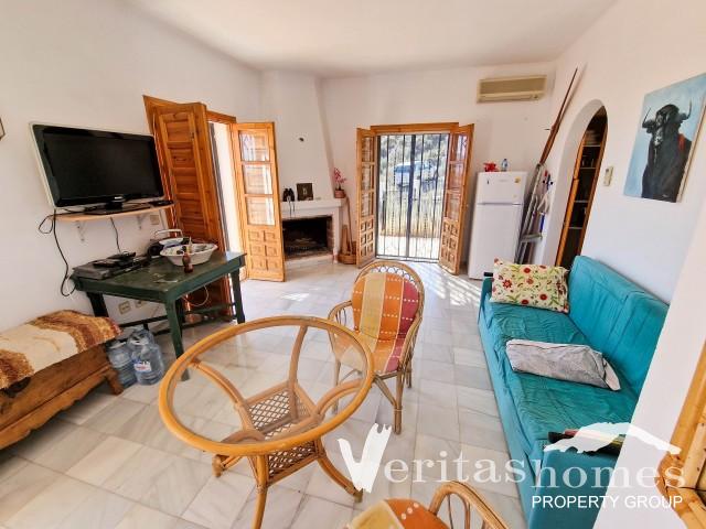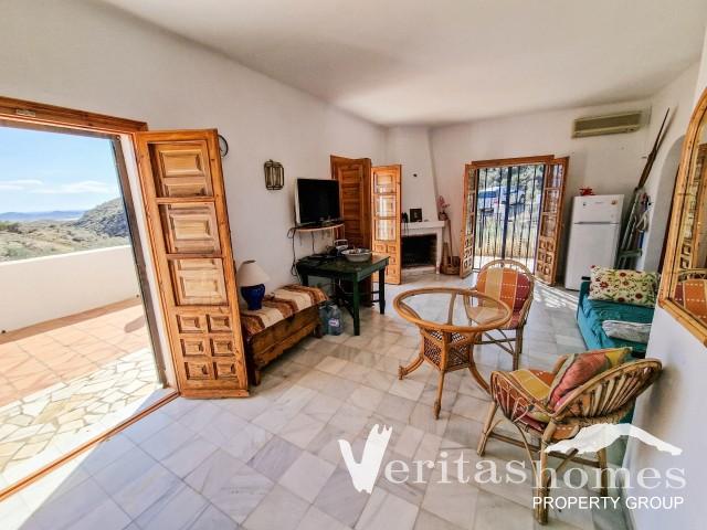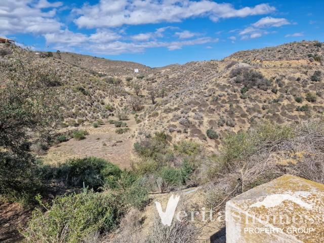Outside, the property has a spacious terrace with a simple wall and railings, ideal for outdoor dining while taking in the scenery. A bamboo-covered section provides shade, and there’s potential to improve the outdoor space with additional shaded areas or seating. The house has mains electricity but no mains water—water can be delivered by truck which is quite common in this area. The coastal towns of Mojacar, Garrucha, and Vera Playa are just 20 km away, making this a great option for someone looking for a peaceful retreat with the possibility to add their own personal touches.