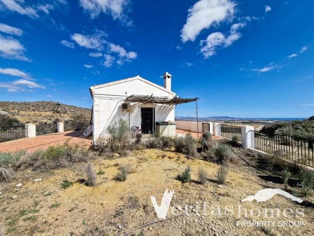 Set in a peaceful countryside location, this simple 1-bedroom home offers panoramic views of the mountains, open countryside, and the sea in the distance. Located 6 km from Los Gallardos, where you’ll find shops, supermarkets, pharmacy, and restaurants, the house is accessible via a 4.5 km asphalt road, with the final 1 km being a dirt track. The 10,000m² plot provides plenty of space to create an outdoor retreat while enjoying the natural surroundings.