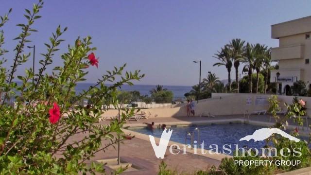 2 bed - 1 bath completely refurbished ground floor apartament in a frontline complex in the beach of Cueva del Lobo, Mojácar Playa, virtually accroos the road from the promenade, the sea, and all the amenities and services. It is also on the bus route.